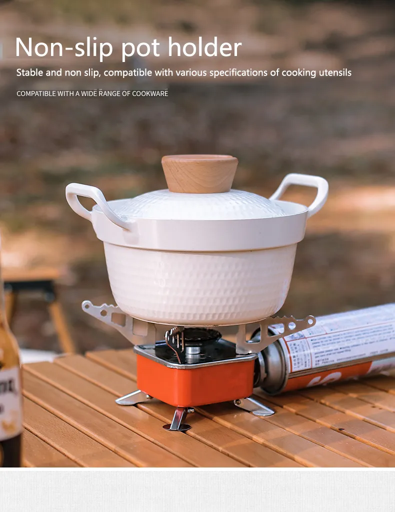 یکی از وسایل ضروری در پیکنیک و گردشگری اجاق گاز مسافرتی است.سفر بدون خورد و خوراک نمی شود و لازمه ان داشتن یک اجاق جم و جور حرفه ای است. شاید بتوان از اجاق گاز در مسافرت به عنوان مهم ترین ابزار نام برد؛ مخصوصا برای ما ایرانی ها که جدا از گرم کردن غذا، لذت نوشیدن چای در کنار عزیزانمان در مسافرت؛ لذت گشت و گذار در فضای سبز را برایمان دوچندان می کند. این اجاق گاز کوهنوردی و مسافرتی یک گزینه بینظیر برای کوهنوردان، ورزشکاران و خانوادههایی است که به دنبال یک راهکار ساده و کارآمد برای پخت و پز در سفر هستند.طراحی تاشو این اجاق گاز امکان استفاده از فضای کمتر و حمل آسانتر آن را فراهم میکند، در عین حال با قابلیت تحمل وزن بالا، میتوانید از ظروف مختلف برای پخت و پز خود استفاده کنید. شعله قوی و پرقدرت این اجاق گاز به شما امکان میدهد تا به سرعت و به راحتی غذاهای خود را در فضای باز آماده کنید.اجاق گاز کوهنوردی و مسافرتی، یک ابزار ضروری برای کسانی است که دوست دارند در طبیعت به کوهنوردی، کمپینگ و مسافرت بروند. با استفاده از این محصول، شما میتوانید از تجربهی پخت و پز در فضای باز لذت ببرید و از زمان کیفیتی با دوستان و خانواده خود برخوردار شوید.کپسول مورد نیاز این محصول از نوع کپسول گاز 200 تا 250 گرمی می باشد که از طریق ابزار فروشی ها به راحتی یافت می شود و به آسانی قابل تعویض است.اجاق مسافرتی دارای طرحی فوق العاده شیک و جمع و جور است که پایه ها و لبه های نگه دارنده آن به شکل تاشو طراحی شده است تا جای کمتری را اشغال نماید.همچنین این اجاق دارای یک کیف مخصوص و برزنتی است که به حمل آسان آن کمک کرده و همچنین از آن محافظت میکند.اجاق گاز کوه نوردی با ویژگی تاشویی که دارد به راحتی قابل حمل بوده و در مکان هایی مثل کوه بدون وزن اضافی و دست و پا گیر بودن به راحتی می توانید آن را حمل کنید. ابعاد این دستگاه در حالت بسته 9.5cm * 9.5cm * 9cm و در حالت باز 16cm * 16cm * 10cmمی باشد. نوع عملکرد این اجاق گازی است و با کپسول های قابل حمل کوچک استوانه ای که مخصوص این مدل گاز ها تعبیه شده است کار می کند. پایه های این اجاق نیز تاشو بوده و هرکجا لازم داشتید می توانید آن ها را باز کنید. به همراه این گاز یک کیف برزنتی کوچک و با کیفیت جهت حمل راحت تر اجاق ارسال می گردد. جنس بدنه گاز استیل ضد زنگ و آلومینیوم می باشد و علاوه بر این مجهز به فندک اهرمی هم هست پس بنابراین هیچ نیازی به کبریت یا فندک مجزا هم نخواهید داشت. پایه و بازوهای تاشو این اجاق فضای کم تری را اشغال می نماید. نازل کنترل فشار گاز به شما امکان تنظیم میزان شعله اجاق را می دهد و همانطور که گفته شد برای روشن کردن اجاق نیز هیچ نیازی به کبریت یا فندک مجزا ندارید و فقط کافیست شعله گاز را باز نموده و اهرم فندکی را بزنید تا با ایجاد جرقه گاز روشن شود. این اجاق بین کوه نوردان و کسانی که زیاد مسافرت و کمپین می روند بسیار محبوب است زیرا در حالت بسته شده بسیار جمع و جور است و وزن بسیار سبکی نیز دارد. با توجه به حالت بازشو بودن بازوهای روی گاز امکان قرار دادن قابلمه های نسبتاً بزرگ نیز بر روی آن وجود دارد پس یک محصول همه چیز تمام برای استفاده خارج از منزل است.