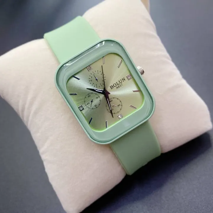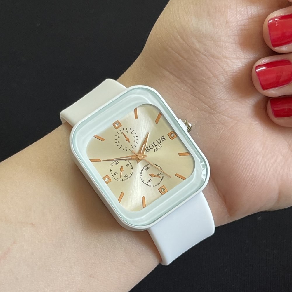 ساعت مچی از قدیم تا امروز یکی از ابزار های سنجش زمان بوده و هست اما تفاوتی که میتوانیم در ساعت مچی های امروزه حس کنیم، اهمیت وجود آنها در استایل هر شخص است. اگر که شما به نوع و سبک لباس پوشیدنتان اهمیت میدهید و میخواهید در نگاه اطرافیان یک شخص ایده آل باشید، پس باید ساعت مچی را به عنوان بخشی از استایل تان بدانید و هنگام خرید ساعت مچی به سبک استایل خودتان توجه کنید. ساعت مچی بیانگر دقت و ارزشی است که شما به استایل خود قائل هستید.این محصول یکی از جذابترین ساعت های موجود در بازار است که طرح مستطیل طراحی شده است. این ساعت دارای وزن سبک است و سنگینی زیادی روی مچ دست شما ندارد.صفحه بسیار زیبا و شفاف و بند این ساعت سلیکونی است و قفل آن سگکی طراحی شده که مناسب هر سایزی است. این ساعت همراه با جعبه کادویی شکیل ارسال میشود در رنگ های متنوع پاستیلی و جذاب عرضه شده است که در سبد خرید می توانید رنگ مورد نظر را انتخاب کنید.