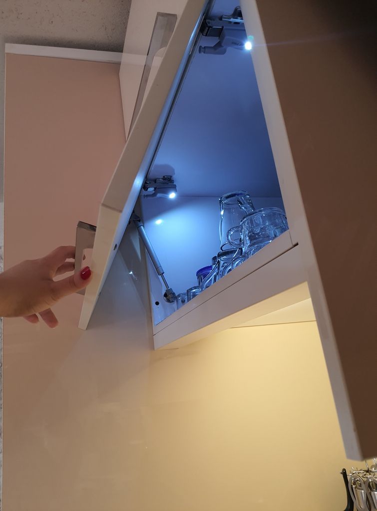 نحوه کار لامپ داخل کابینت اشپزخانه بسیار ساده است و اصلا پیچیدگی خاصی ندارد. این لامپ دارای یک شاسی است که با پایین رفتن این شاسی چراغ خاموش میشود. درواقع زمانی که شما در کابینت را میبندید این شاسی داخل میرود و چراغ خاموش میشود. اما هنگامی که در کابینت یا کمد را باز میکنید، شاسی رها میشود و سبب روشن شدن چراغ میشود. دقت داشته باشید که شاسی حتما باید به سمت در کابینت باشد در غیر اینصورت شاسی داخل نمیرود و لامپ روشن میماند.