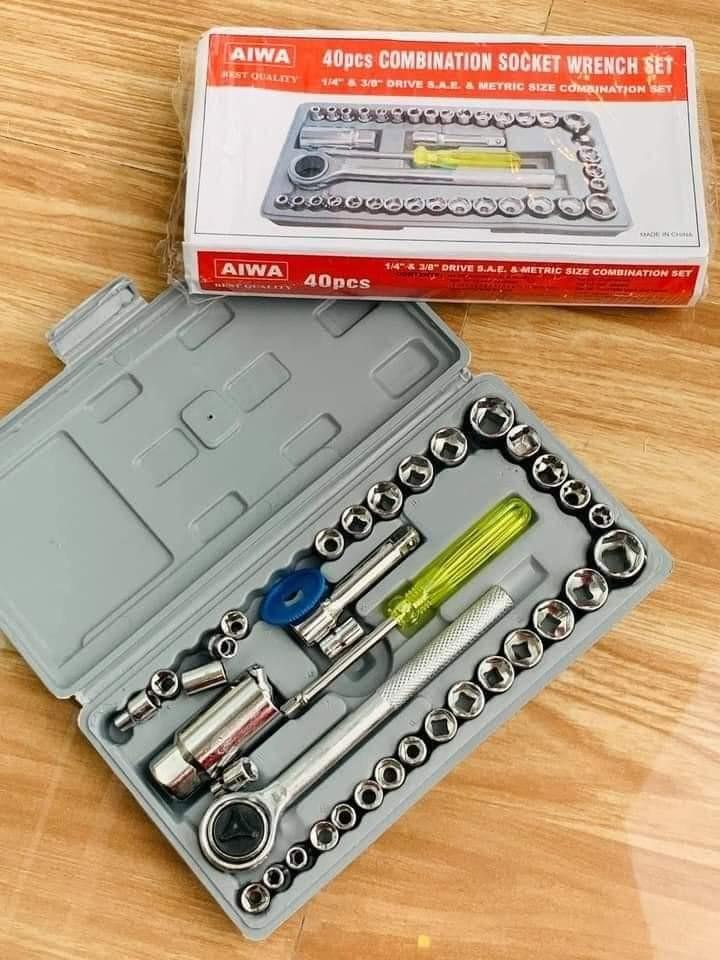 این مجموعه ست کامل ابزار و آچار بکس است که یک جعبه کامل از ابزار و آچار های مختلف برای استفاده انواع خودرو سواری و مجموعه ای ارزان قیمت جهت تعمیرات در خانه و خودرو میباشد. این بکس شامل سری کامل ریز تا درشت آچار بکس 40 تکه است. این بکس دارای تبدیل بکس های 1/4 به 3/8 و اچار شمع ماشین، کمکی بکس ومناسب برای خودرو منزل موتورسیکلت میباشد. مجموعه 40 عددی آچار بکس AIWA یک ست بی نظیر از انواع مختلف آچار بکس و متعلقات آن می باشد که تمامی این اقلام ساخته شده از استیل کروم وانادیوم با روکش صیقلی و آینه ای است.به کار گیری این آلیاژ در ساخت ابزار، باعث بالا رفتن مقاومت آن ها در برابر ضربه، حرارت و فشار خواهد شد و از زنگ زدگی هم جلوگیری می کند.
