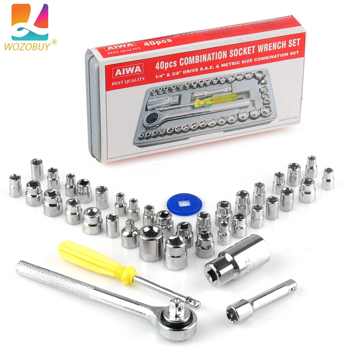 ویژگی های مجموعه 40 عددی آچار بکس AIWA: