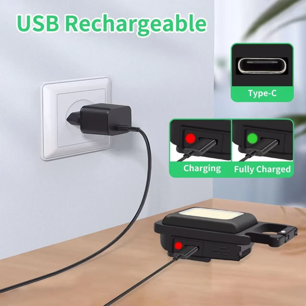 وقتی زمان شارژ مجدد فرا می رسد، کافی است آن را به هر منبع تغذیه USB وصل کنید. این چراغ قوه شارژی USB توسط یک باتری داخلی قابل شارژ با ظرفیت 500 میلی آمپر ساعت، کابل شارژ تایپ C به USB تغذیه می شود. معمولاً حدود 2 ساعت طول می کشد تا کاملاً شارژ شود. پایه آهنربایی قوی و دسته قابل چرخش به شما امکان می دهد در حین کار دستان خود را رها کنید. طراحی آهنربا به لامپ اجازه می دهد تا به هر فلزی متصل شود و دسته قابل تاشو 180 درجه اجازه می دهد تا لامپ در زوایای مختلف قرار گیرد یا در مکان های خاصی آویزان شود.این چراغ قوه جاکلیدی می تواند نورهایی با حداکثر 800 لومن ساطع کند. این یک نور روشن با زاویه گسترده ارائه می دهد. LED فنی بزرگ COB اجازه می دهد تا از این چراغ به عنوان چراغ کار کوچک و چراغ اضطراری استفاده شود. چراغ قوه قابل حمل دارای کارابینی است که به راحتی به حلقه کلید یا کیف وصل می شود و در برابر آب و ضربه مقاوم است. از طرف دیگر، بطری بازکن خوبی است. شما می توانید از آن در سناریوهای مختلفی مانند کمپینگ، پیاده روی سگ، جستجوی چیزها، تعمیر استفاده کنید.